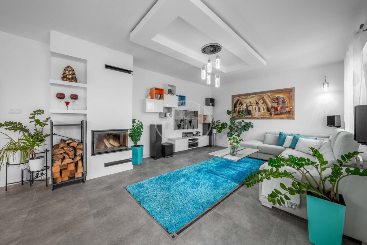 NIERUCHOMOŚĆDom wybudowany w 2014 roku, posadowiony na dużej, w pełni ogrodzonej działce o powierzchni 1300 m². Posesja z automatyczną bramą wjazdową, dojazd asfaltową drogą gminną. W bryle budynku znajduje się garaż oraz kotłownia, a przed domem dodatkowe miejsca parkingowe. Powierzchnia całkowita domu wynosi ok. 128,31 m². Nieruchomość jest w pełni wykończona i gotowa do zamieszkania.