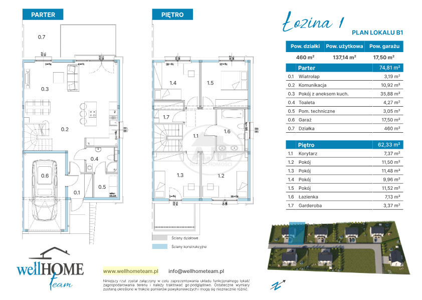 Standard i instalacje:Ogrzewanie podłogowe w całym domu, również w garażu