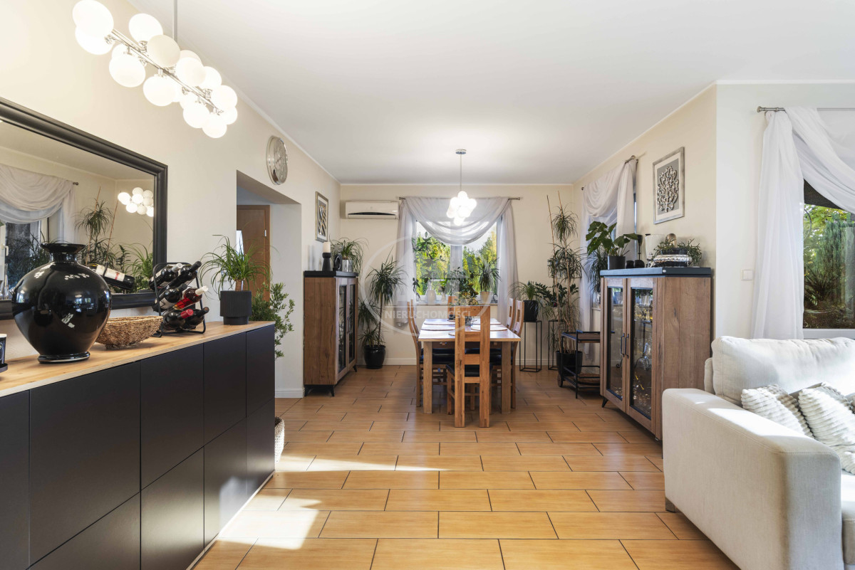 Nieruchomość położona jest na dużej parceli z licznymi drzewami oraz zielenią, które tworzą przyjemną osłonę i dają poczucie intymności.