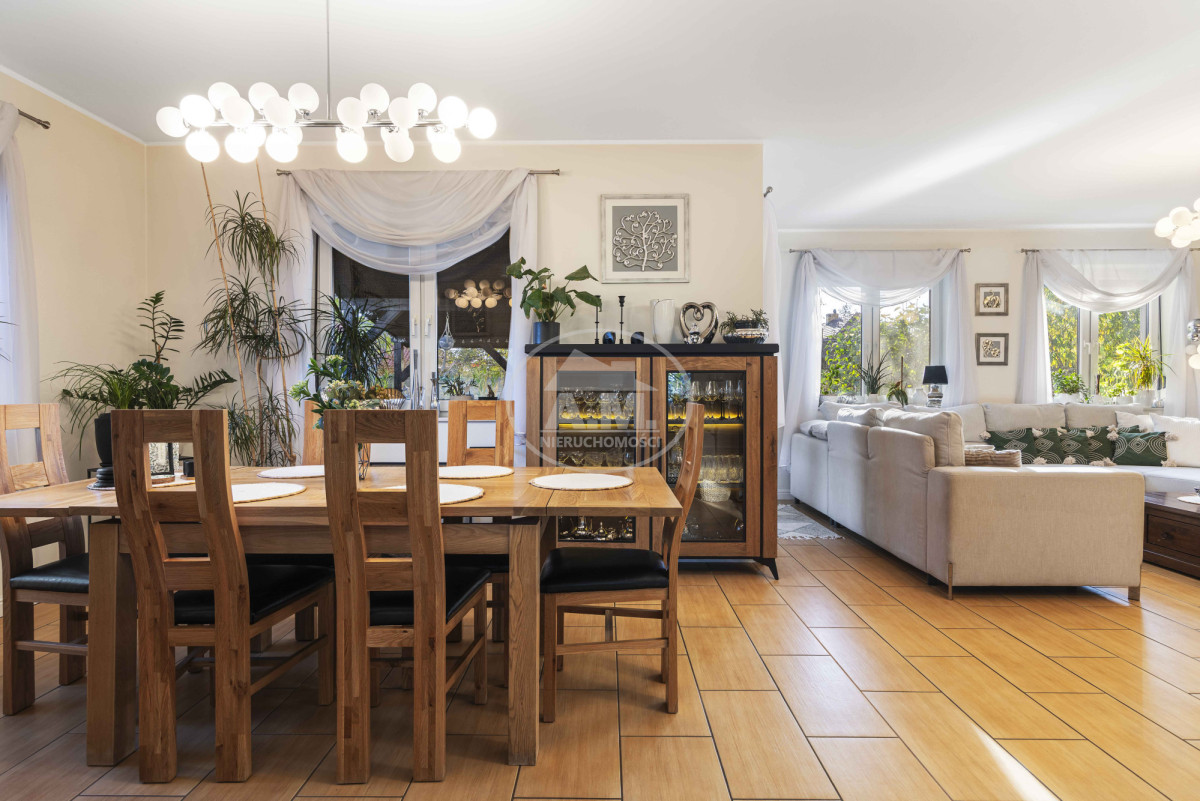 • część jadalniana w otwartym układzie, połączona z kuchnią i salonem,