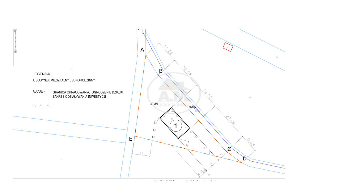 Oferujemy na sprzedaż działkę o powierzchni 1039 m², oznaczoną w miejscowym planie zagospodarowania przestrzennego symbolem 30MN - tereny zabudowy mieszkaniowej jednorodzinnej. Działka znajduje się w spokojnej, malowniczej części Trzebnicy, w bliskim sąsiedztwie pełnej infrastruktury miejskiej, a jednocześnie na obrzeżach, co gwarantuje ciszę i komfort.