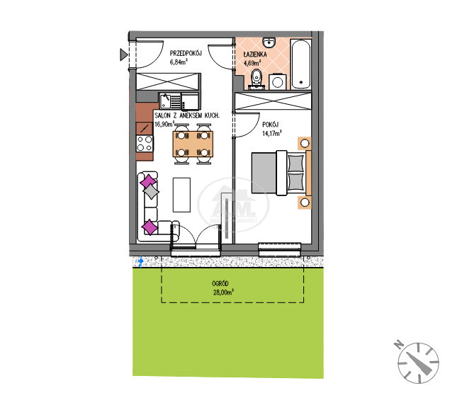 Przedstawiamy ofertę sprzedaży mieszkania o powierzchni użytkowej 42,60 m², zlokalizowanego na parterze nowoczesnego, 2-piętrowego budynku w spokojnej części Siechnic, przy ul. Magnoliowej