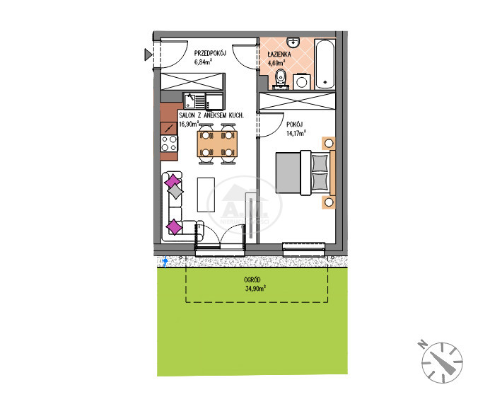 Przedstawiamy ofertę sprzedaży mieszkania o powierzchni użytkowej 42,63 m², z ogródkiem o powierzchni około m², zlokalizowanego na parterze nowoczesnego, 2-piętrowego budynku w spokojnej części Siechnic, przy ul. Magnoliowej