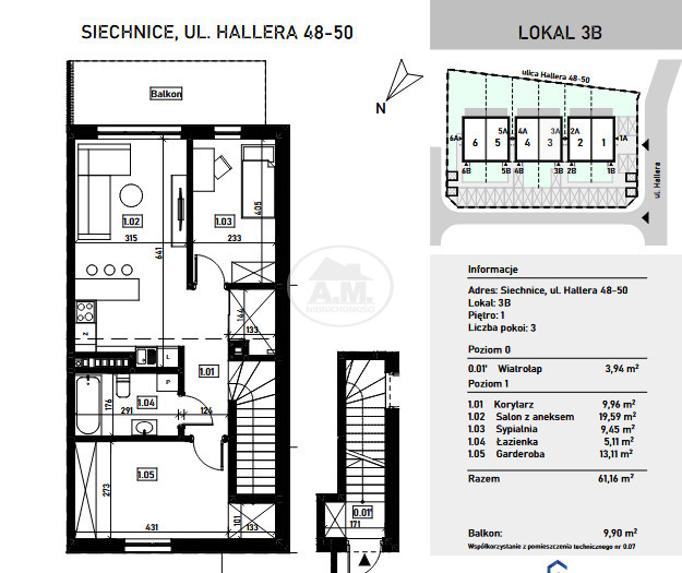 Powierzchnia mieszkania: 61,16 m²
