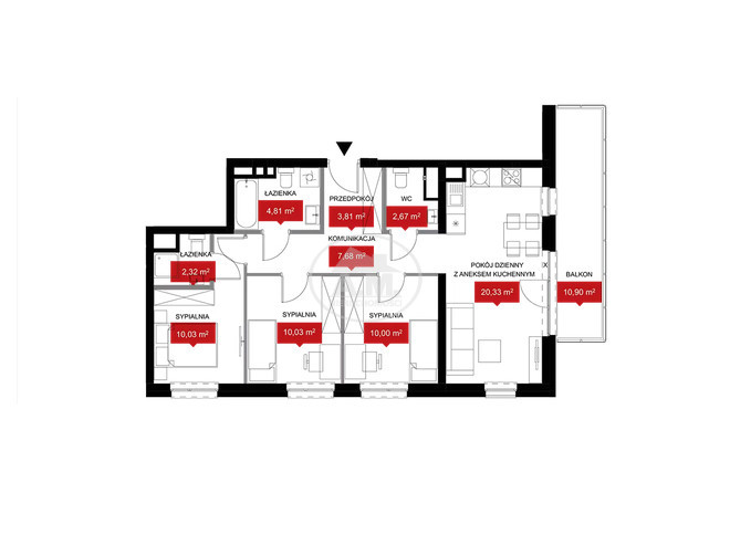 -Duży balkon 10,9m2( Loggia z ruchomym przeszkleniem)