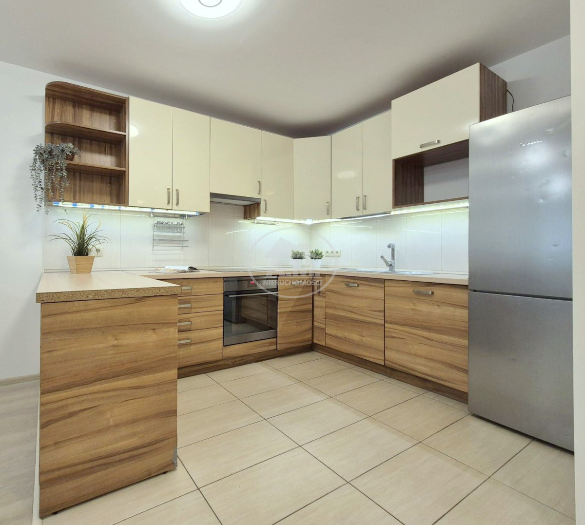 W cenie może pozostać wyposażenie kuchni i AGD: płyta indukcyjna, piekarnik, zmywarka, lodówka, pralka, suszarka bębnowa oraz meble widoczne na zdjęciach.