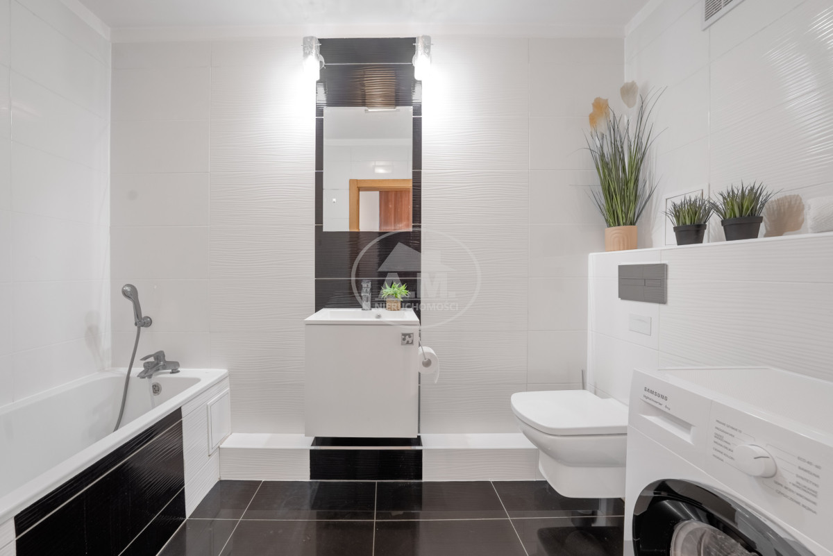 • Łazienka z wanną oraz pralką