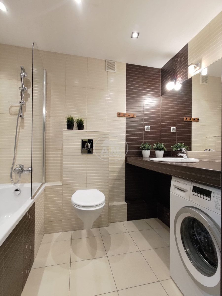 • łazienka z wanną i pralką