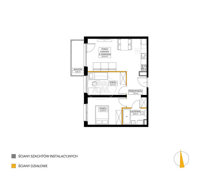Mieszkanie z balkonem w którego skład wchodzi:Pokój