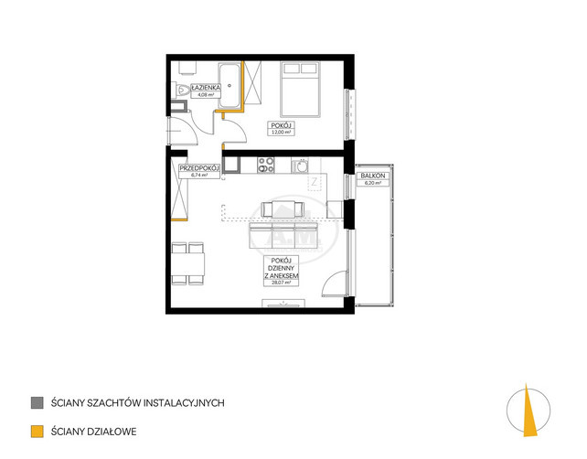 Mieszkanie z balkonem w którego skład wchodzi:Pokój