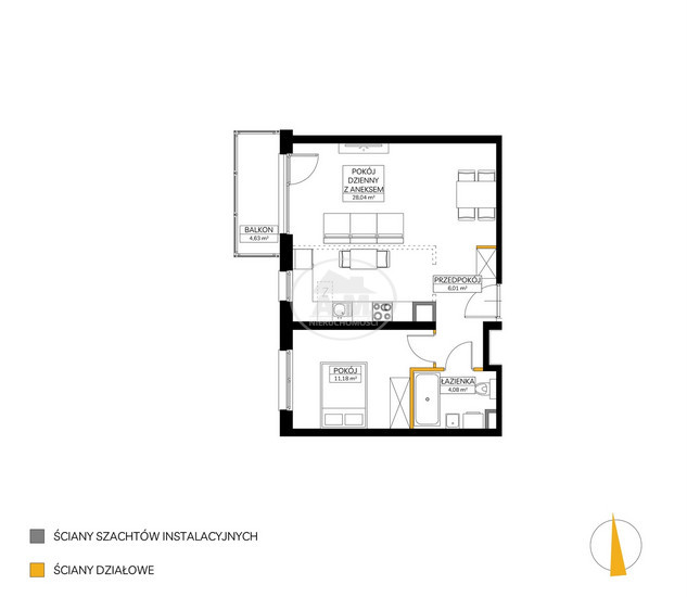 Mieszkanie z balkonem w którego skład wchodzi:Pokój