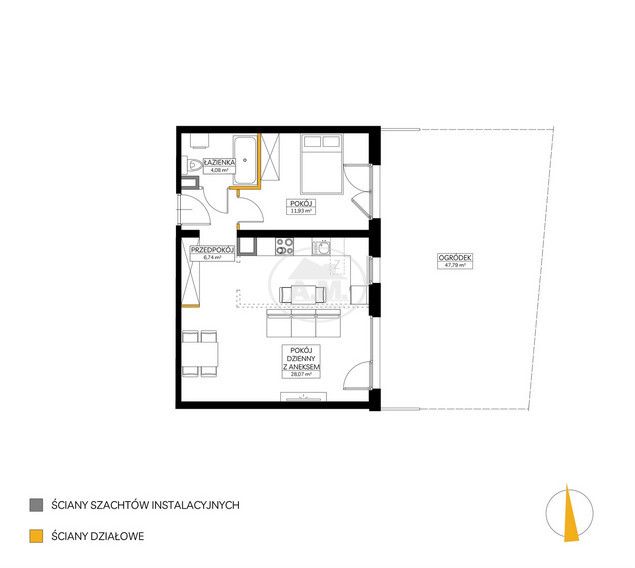 Salon z aneksem kuchennym( możliwość wydzielania kuchni)