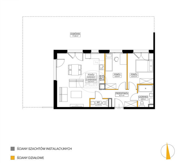 Dwustronne mieszkanie z ogrodem w którego skład wchodzi:Salon z aneksem kuchennym( możliwość wydzielania osobnej kuchni)