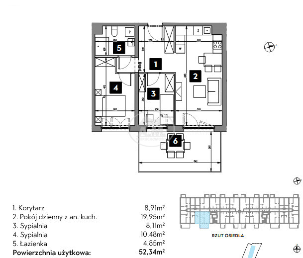 Powierzchnia całkowita mieszkania: 52,35 m²