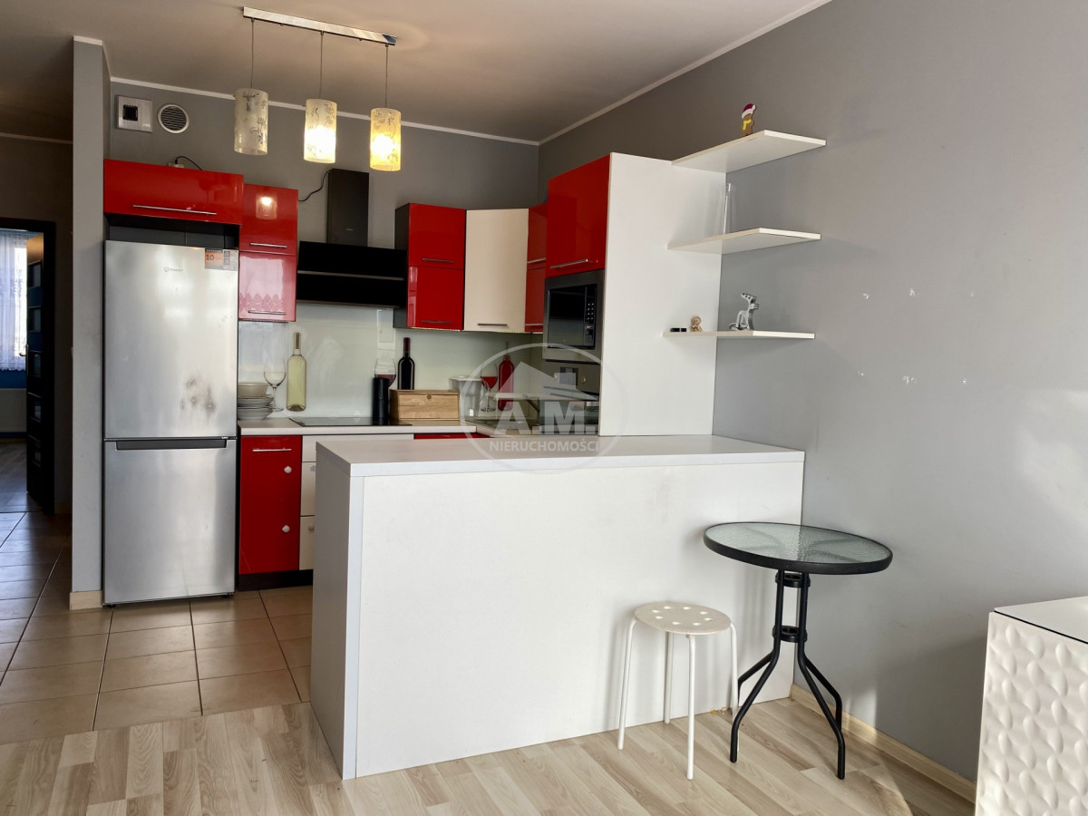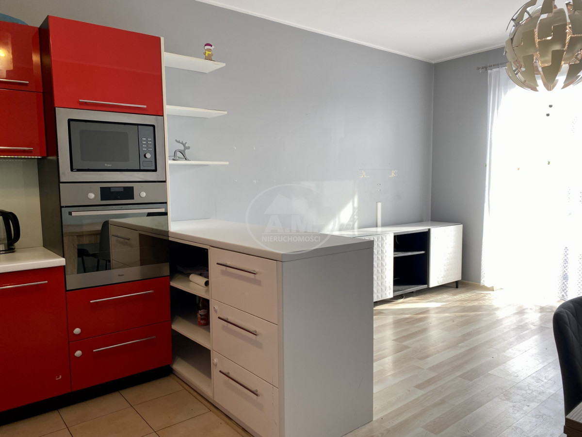 Mieszkanie wyposażone jest w klimatyzację, a kuchnia posiada pełne wyposażenie AGD, co pozwala na wygodne użytkowanie od razu po zakupie.