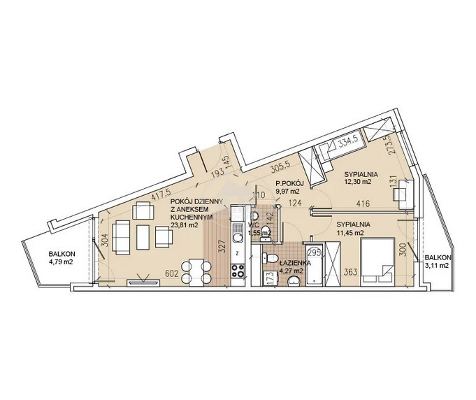 Dwustronne mieszkanie z balkonami