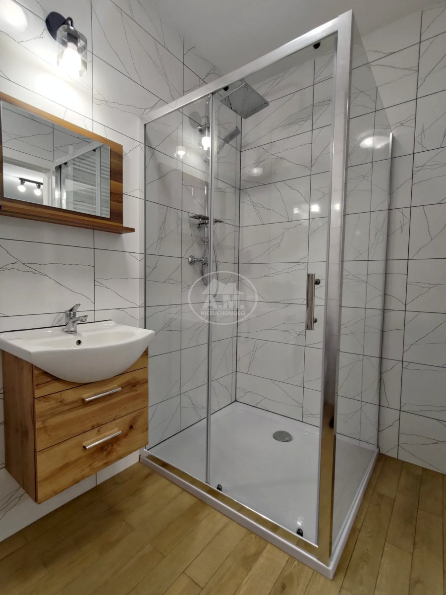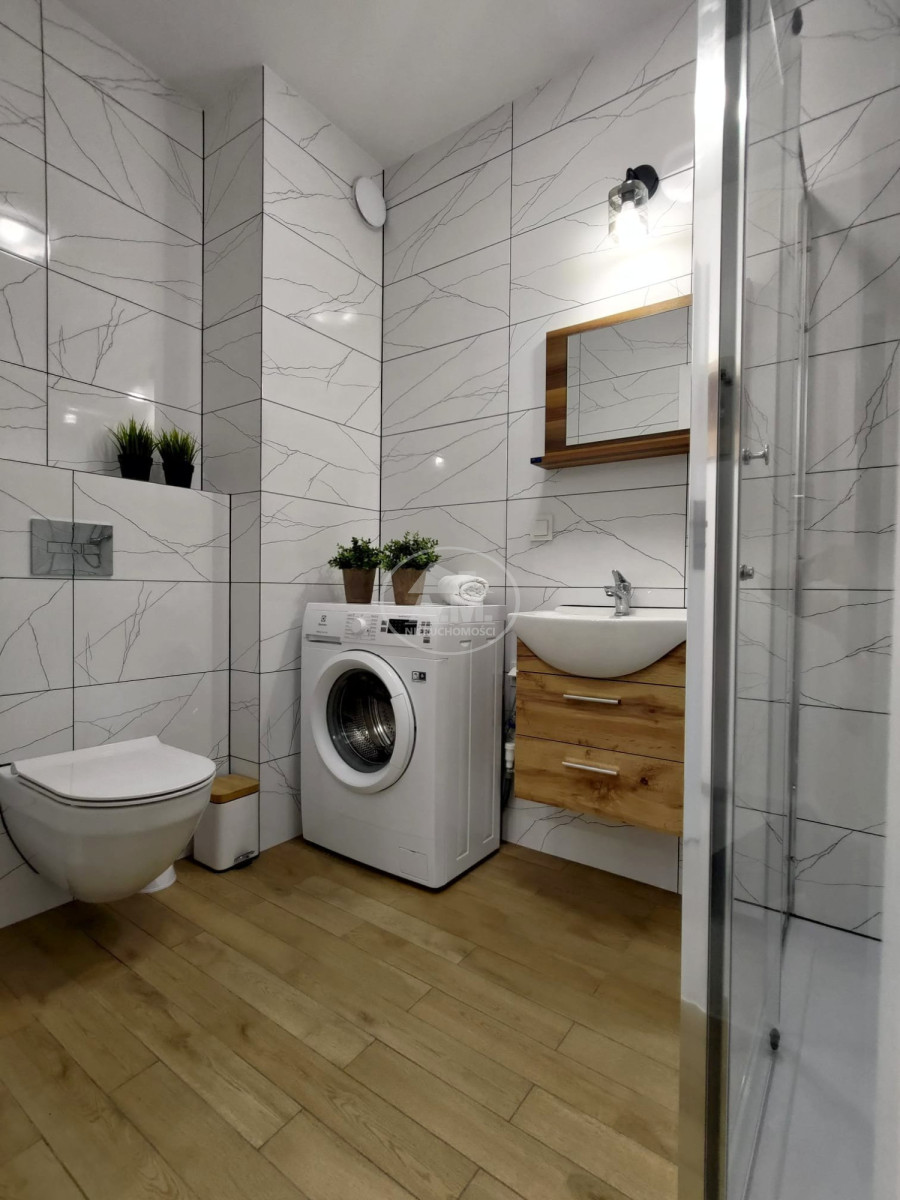 • funkcjonalna łazienka z kabiną prysznicową i pralką