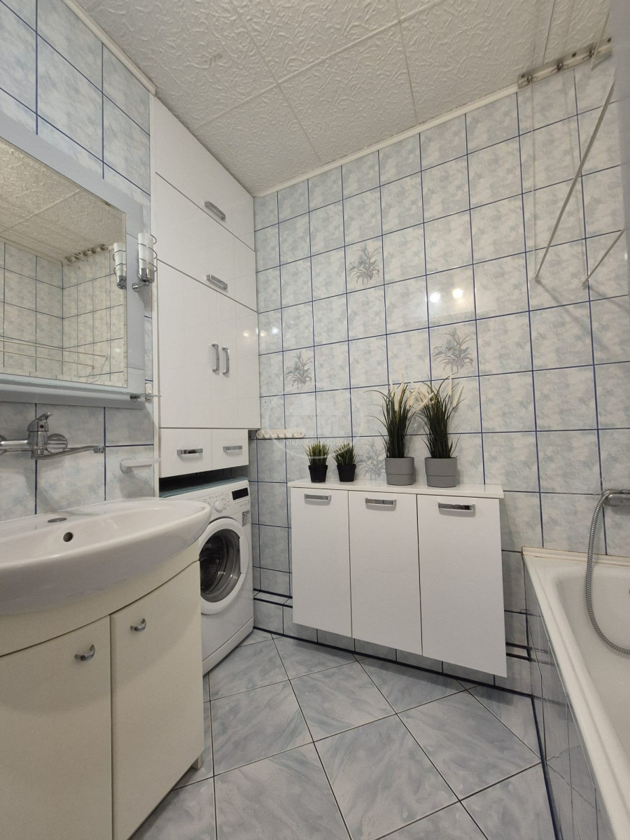 • Łazienka - z wanną, pralką i półkami na przechowywanie drobiazgów.